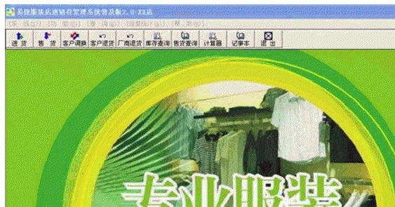 功能模块:进货,批量进货,售货,客户调换,客户退货,问题服装处理,厂家退货,销售作废,重新打印,价格变动,营业外其他支出。