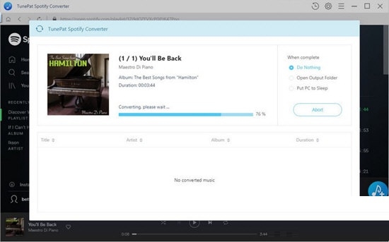TunePat spotify Converter官方版是款深受用户喜爱且简单易用的Spotify转换器,TunePat Spotify Converter官方版界面简洁友好,功能强劲实用,且该软件是专门为了Spotify用户设计的,TunePat Spotify Converter可将Spotify音乐或播放列表转换为MP3、AAC、WAV或FLAC等其他流行音频格式,并具有无损质量。