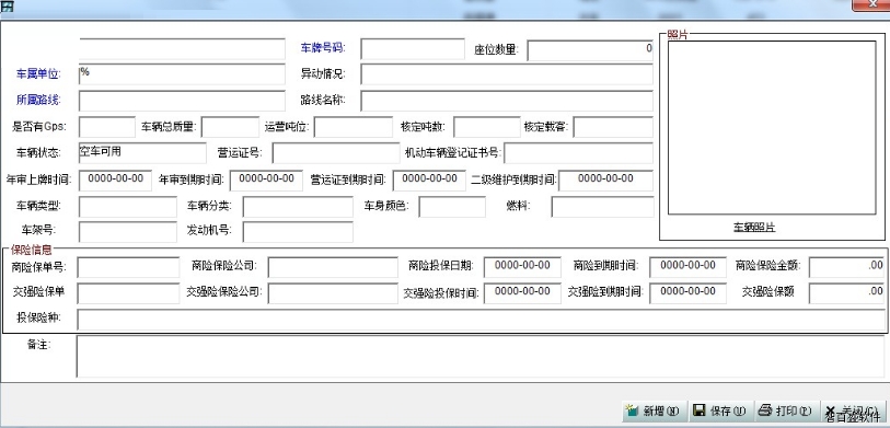 3、支持车辆管理功能,将车辆信息输入到软件,按照软件界面弹出的功能编辑相关的资料