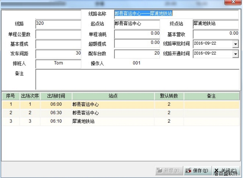 5、业务设置功能,将线路输入到软件,也支持排班功能