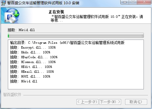 1、打开智百盛公交车运输管理软件V10.0(试用版).exe软件直接安装,点击下一步