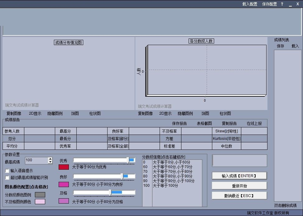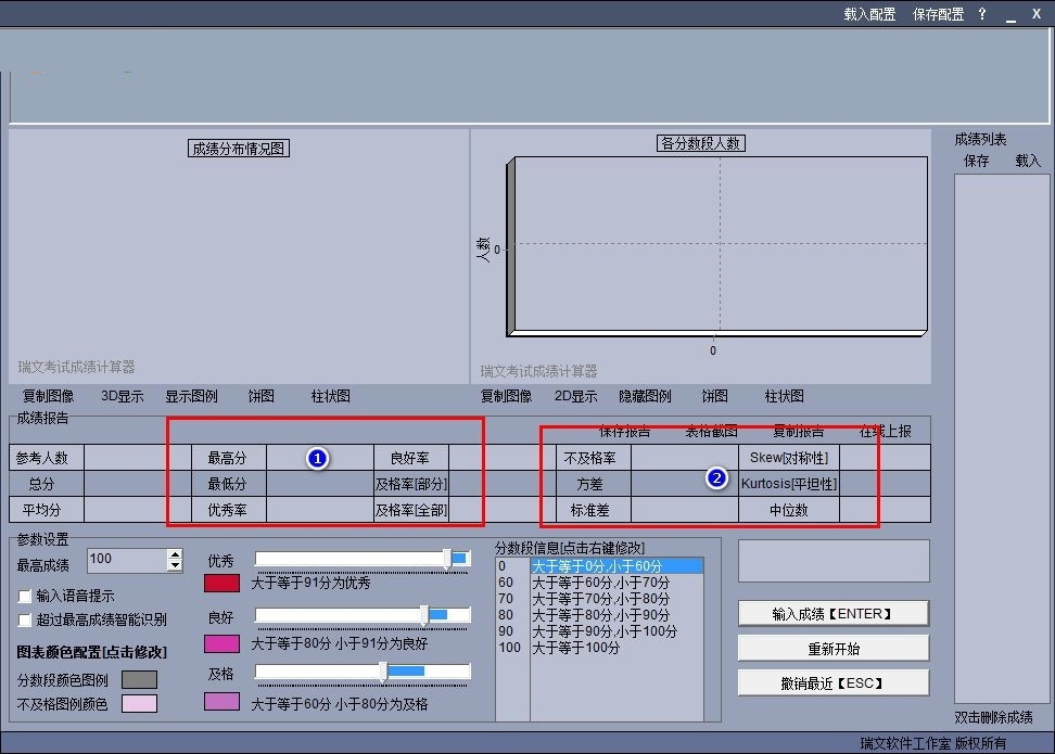 瑞文考试成绩计算器可以显示分数段的统计