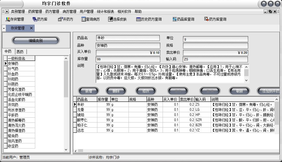 1、增加了可以编辑历史旧药方的功能,增加了自动产生拼音码功能。
