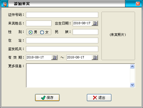 来宾接待:对来宾用户进行自动刷卡登记,也可根据实际情况自动记录来宾的其它事件行为;可以手动添加、修改、删除来宾信息,也可以添加、修改、删除来宾事件操作。