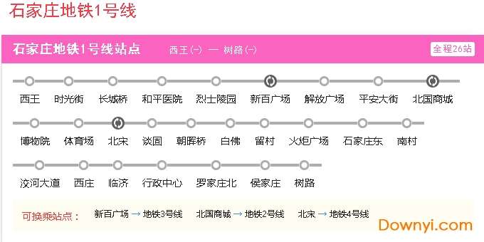 石家庄地铁1号线线路总长约40公里,是沿市区主轴布置的东西向骨干线路,穿越滹沱河后进入正定,串联了主城区、高新区和正定新区。石家庄地铁1号线衔接主要对外交通枢纽和城市重要功能节点,连接主城区、高新区与正定新区的干线线路。