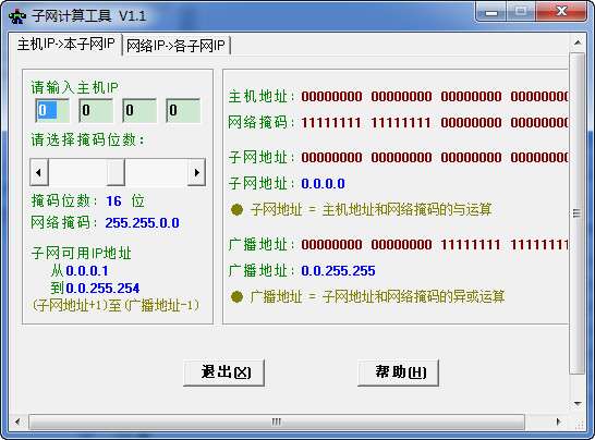 -每个子网最多容纳的主机数。并且可以显示当前网络主机范围,主机二进制掩码、主机二进制表示方法,