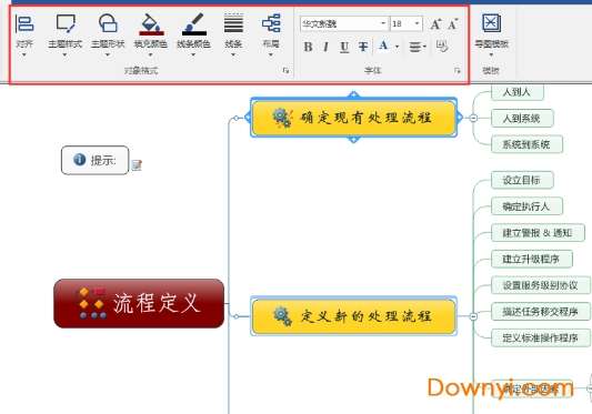 4、格式修改(一):其次,根据主题的级别,依次进行字体、颜色、主题样式、填充等基本设置,mindmanager中这些设置相信都难不倒大家,毕竟对于word我们还是很熟悉的。交叉使用这些工具,可以实现很多不同的显示结果。有关每个工具的使用,这里不多做介绍,想了解的直接在官网搜教程就好。