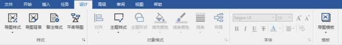 2、在mindmanager中,完成导图的基本制作后,接下来就是设计导图,让其整体更和谐、更直观,菜单栏中,打开“设计”界面就可以看到很多可用的设计工具了。