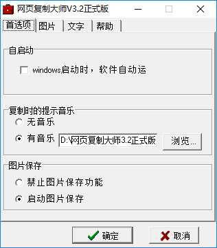 “复制时的提示音乐”:当您复制网页文字时,程序会播放此声音文件,使您能够确认文件确实被保存了!