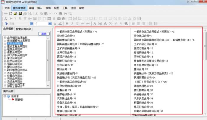合同是现在社会中经常用到的东西,各行各业的合同都会有不同。那么有没有合同的格式和合同的类容或多或少会有一点点相似之处。那么合同生成大师(合同生成软件)是一款帮助用户编写合同的软件,在合同模板中根据需要进行相应的修改。