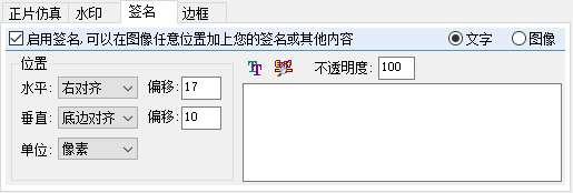 签名功能是给图像添加以文字或图片的签名标记,默认设置是文字标记。