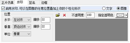 水印的功能是给图像增加图片或文字的标记,默认设置是图像标记。