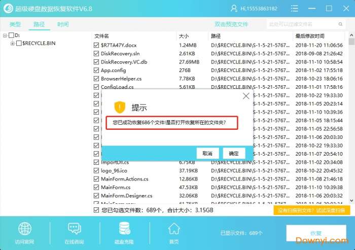 恢复过程有进度条提示,文件恢复完成后,提示是否打开恢复所在的文件夹;
