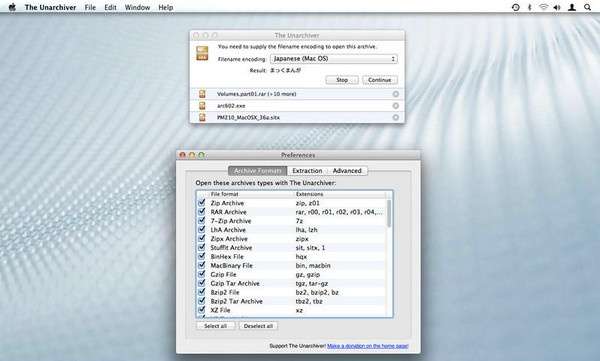 the unarchiver操作简单易用, 可以帮助你存储不同类型的档案文件! 可以打开一些常见格式的文件,比如zip、rar... 也可以打开一些较老格式的文件,比如arj、arc... 你使用它打开文件时它会自动检测和修正文件编码, 使你在任何地方都不会得到乱码的文章。 这款软件是你工作中非常需要的必备软件!