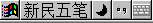 新民码的拼音简码是很有特色的,总共码才只有四位,可以集成到很多的输入法中.使用户使用时不用切换就能够轻松自如的调用大字符集,而且减掉一个键码后输入速度更快了,基本不影响用户原来的输入速度.新民五笔拼音码软件完全免费,大家可以自由使用.拼音部分目前只有gbk单字,以后我们会加入词组和智能功能,并且我们保证免费.新民五笔可安装WINXP.拼音部分使用新民码简拼,包含所有GB18030汉字,码长只有四位,打Z后可使用新民大形声码,即只要将每个部首的读音首码打上就可找到该字