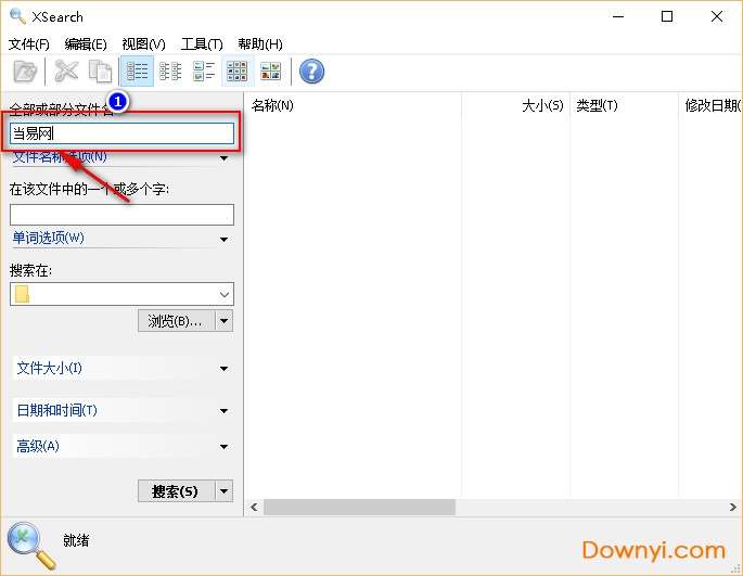 8、它支持搜索文件的文件名称、大小、日期时间和单词。