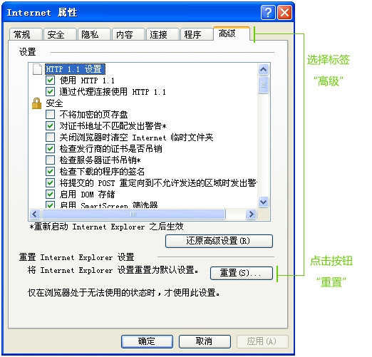 重置ie浏览器(ie浏览器版本在IE8以下,请先升级到IE8):打开IE浏览器,点击页面上方“工具”--“Internet选项”--“高级”--“重置”,重置完成之后,重新登录CCTalk。