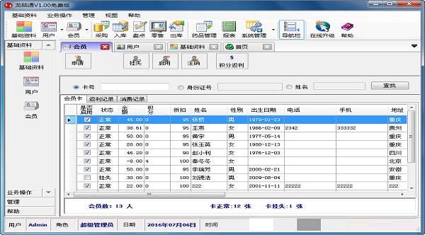 8、会员管理简单,只须本人身份证就可成为本店会员,通过身份证号就可实现购药,积分。
