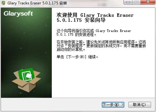 3.双击exe程序,可以直接进入电脑隐私清理器(Glary Tracks Eraser)软件安装界面,点击下一步