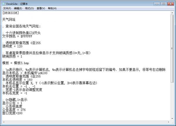 DeskSide.ini界面设置(其中包含天气网址的设置)