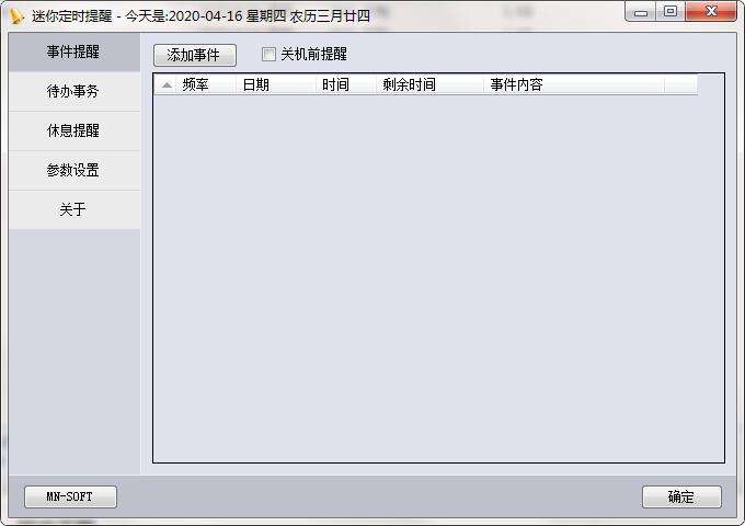 1、进入迷你定时提醒工具主界面,点击事件提醒,可以在右侧框架中找到需要提醒的事件日期、事件、剩余时间以及时间内容