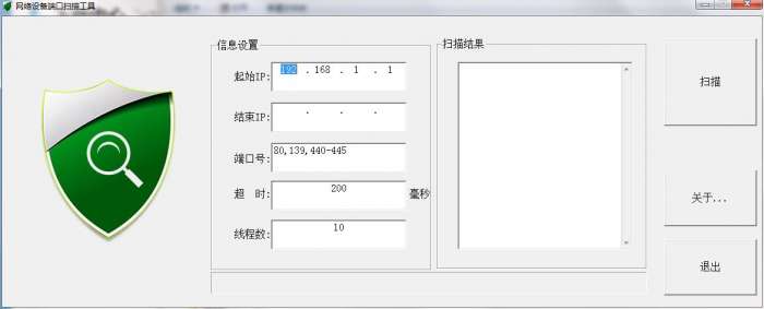 网络设备端口扫描工具绿色版支持对结束的IP进行输入