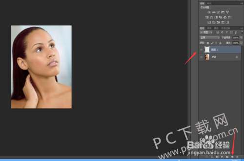 1、先在PhotoShop 6.0(ps6)中将需要美白的照片导入打开,然后选择新建一个图层。