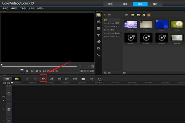 1) 打开会声会影x10软件,点击如图所示的图标: