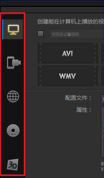 4、中间的一列是选项栏,分别是媒体、即使项目、动画、图形、滤镜、路径