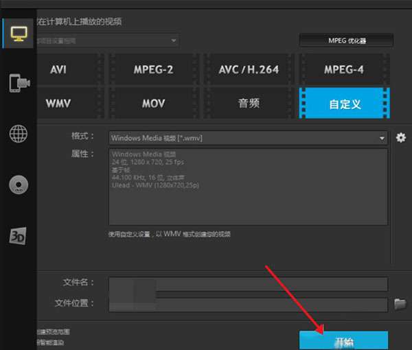 6)全部设置好以后,点击右下角的开始,就会输出视频了