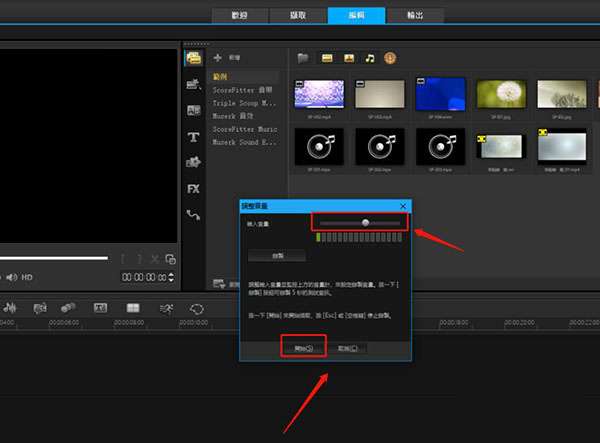 3)调整一下输入的音量,然后就可以点击开始按钮了