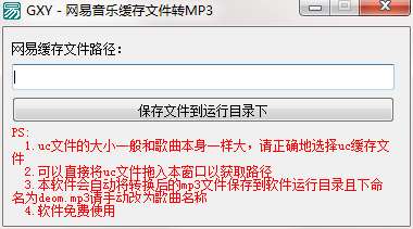 3.本软件会自动将转换后的mp3文件保存到软件运行目录且下命名为deom.mp3请手动改为歌曲名称
