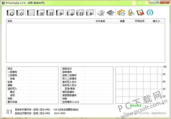 6、PrimoCache支持多种缓存策略以及灵活的缓存设置。您可轻松为您的物理硬盘创建缓存,提高硬盘的读写性能。由于PrimoCache是在Windows驱动层中实现功能,在创建缓存后,系统和其它应用程序无需作任何改变即可自动应用缓存。
