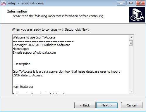 JsonToAccess是一款功能强大的json导入aceess是数据库转换软件,它是个可视化的转换工具,支持用户将需要的json数据导入要进行使用的aceess数据库里面,并且只要使用鼠标,就可以完成所有的转换操作。