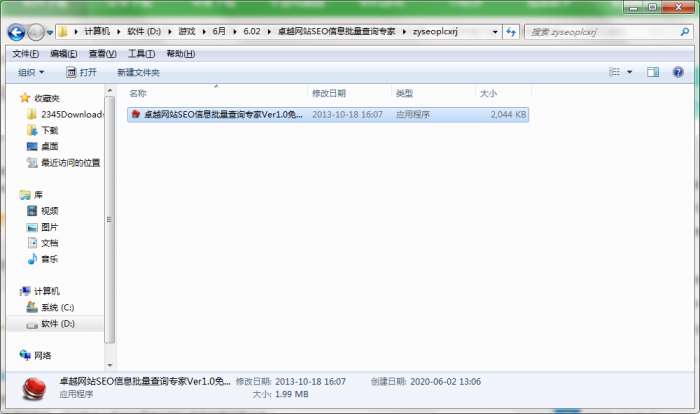2.解压卓越网站SEO信息批量查询专家软件,运行“EXE.文件”