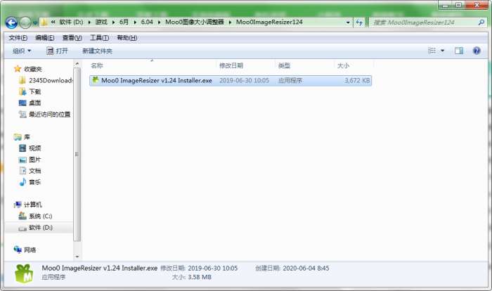2.解压Moo0图像大小调整器软件,运行“EXE.文件”