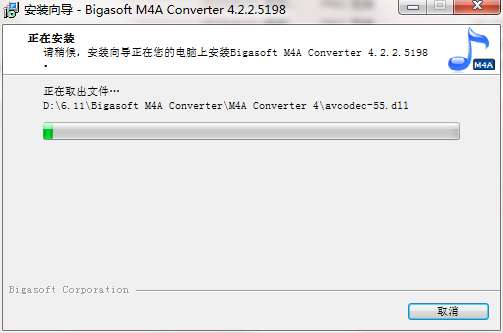 7、m4a转mp3格式转换器(Bigasoft M4A Converter)官方版正在安装,我们耐心等待