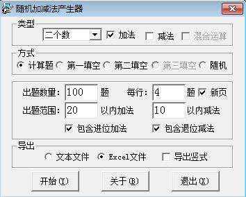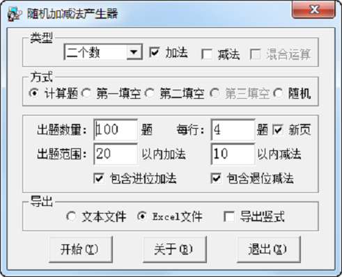 2.可以按需要生成进位加法(默认)、无进位加法,退位减法(默认)、无退位减法