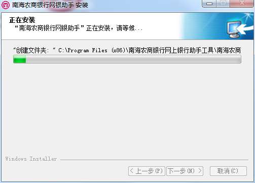 2、南海农商银行网上银行官方版软件正在安装,我们耐心等待