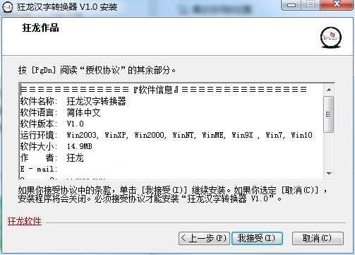 1.在PC下载网下载狂龙汉字转换器官方版安装包,解压后,双击exe程序,进入安装向导,单击下一步