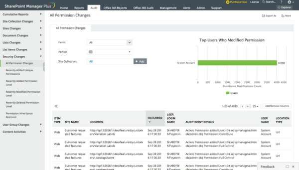 此解决方案帮助您管理SharePoint服务器的存储空间和服务器上的内容、跟踪服务器上发生的关键权限更改等等。