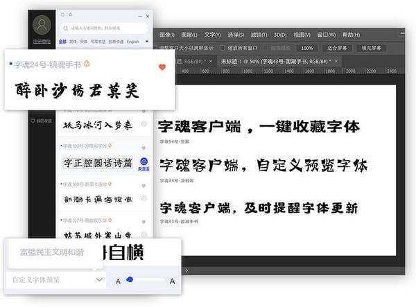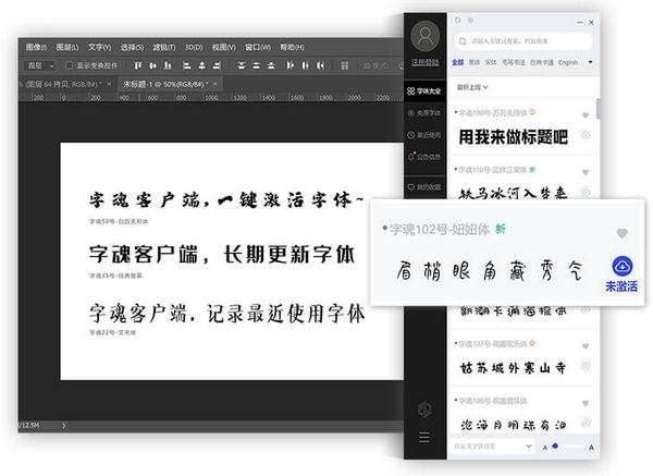 直接、快速与软件交互:无需下载安装字体快速在软件中使用字体。