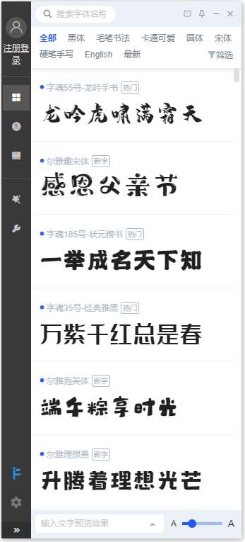 单击字体一键使用,快速查看字体效果,无需下载安装