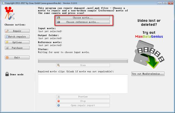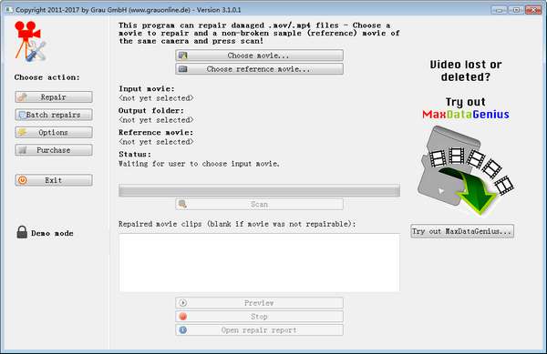 Grau Gmbh最新版是一款相当不错的视频修复处理软件,Grau Gmbh官方版能够修复多种格式的视频,无论是视频损坏还是视频乱码,软件都能将它们修复好,Grau Gmbh最新版支持修复mp4视频、mov视频文件,还有中英文语言可供选择,还能够将佳能MOV格式视频修复成功,修复成功率高。