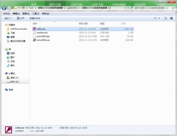 2.解压破障ACCESS数据库查看器软件,运行“EXE.文件”