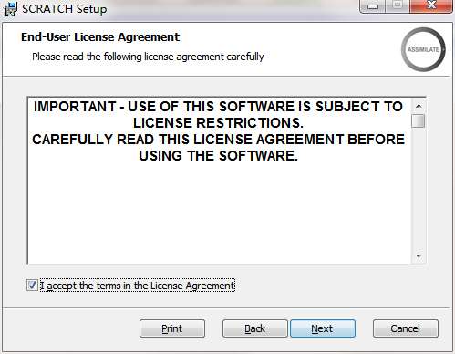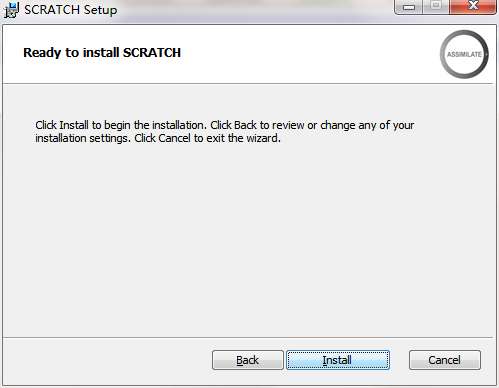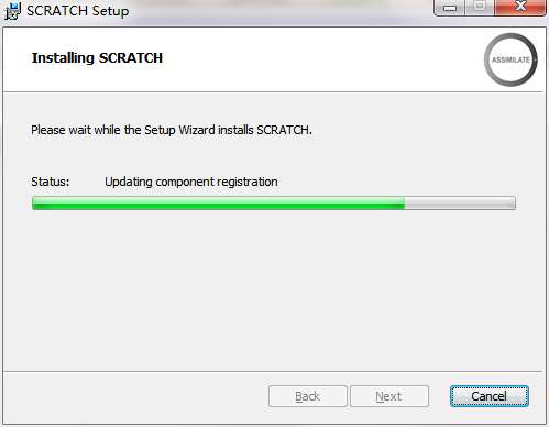 7.Assimilate Scratch软件正在安装,请耐心等待,稍后点击完成即可