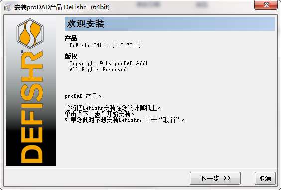 3.双击打开,进入proDAD DEFISHR软件界面,点击下一步