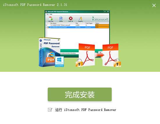 4.点击完成,iStonsoft PDF Password Remover软件安装成功