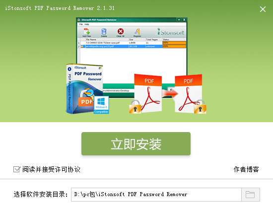3.双击打开,进入iStonsoft PDF Password Remover软件界面,选择安装位置,点击立即安装