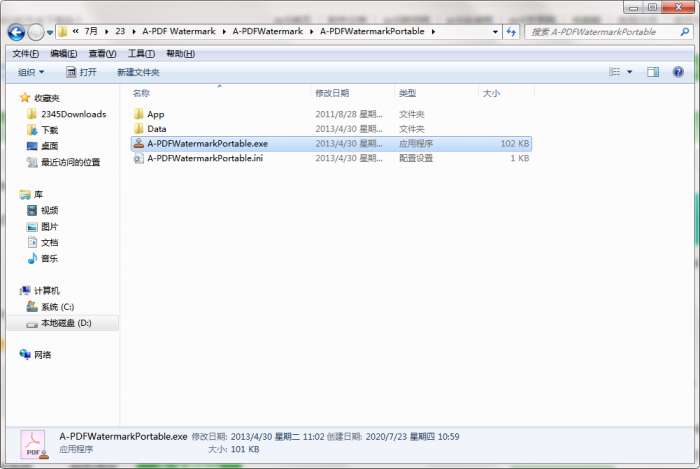 1、下载解压文件,找到“A-PDFWatermarkPortable.exe”双击打开